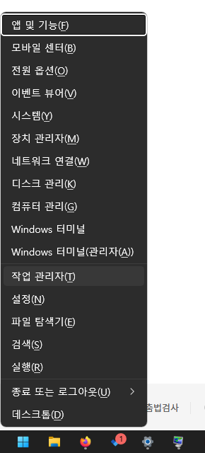 Window + x를 누르면 아래와 같은 모습을 볼 수 있는데, 여기서 '설정'을 선택하자.