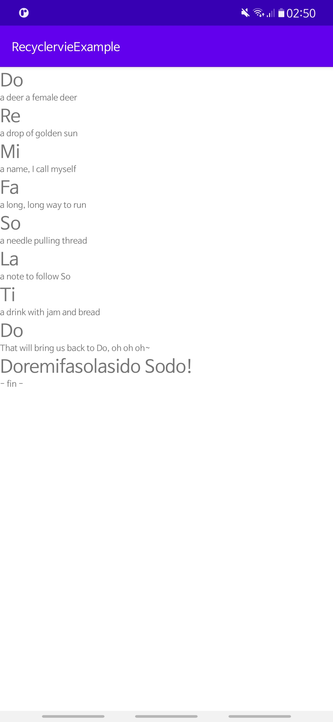 RecyclerView를 사용해보자. 참고로 이 예제는 View Binding을 사용하였다.