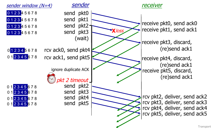 - Senders timeout, retransmit individualy for unACKed packet