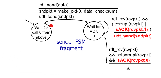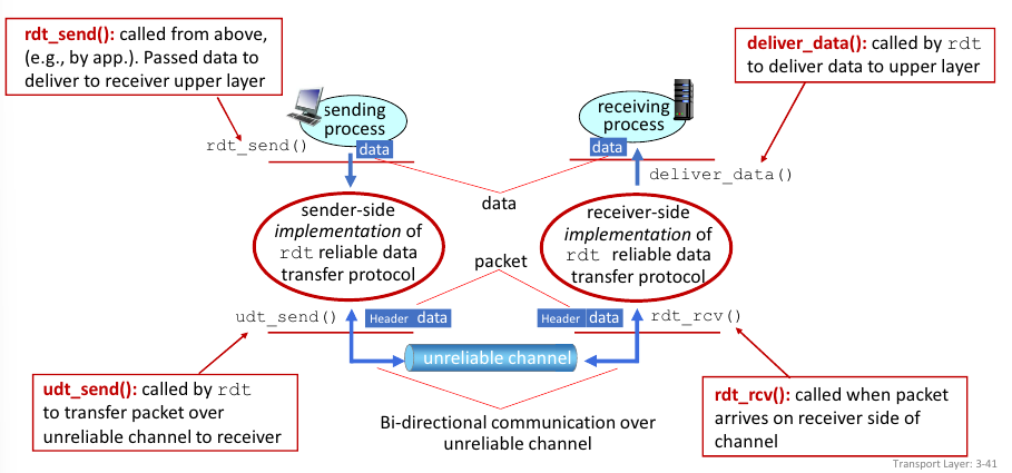 - rdt_send(data) → udt_send(packet)