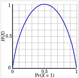 위 식으로 앞면이 나올 모든 확률 값에 대한 entropy를 계산하면 아래와 같습니다.